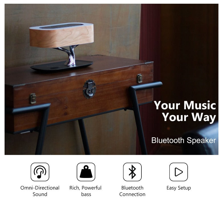 Modern Wooden Smart Desk Lamp with Wireless Charger & Bluetooth Speaker